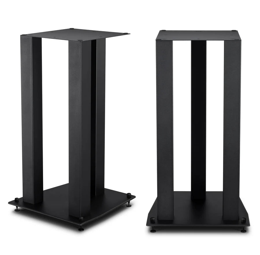 Exclusively designed for Mobile Fidelity SourcePoint 8 bookshelf loudspeakers, these 22-inch-tall steel stands raise your speakers to the ideal listening height and provide vibration-resistant support. The three-pole design can also be filled for extra stability. The top plate measures 10 x 10 (WD) inches and is 0.08 inches thick; the base plate measures 12.99 x 12.52 (WD) inches and is 0.24 inches thick. Sold in pairs. Each set comes with spikes, spike plates, and neoprene and felt pads.