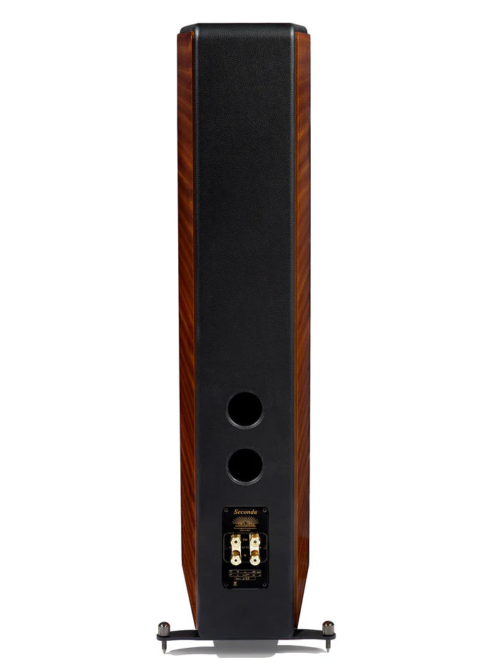 The four external connectors (the Seconda is designed for bi-wiring) are traditional gold-plated brass connectors, which is the same for all Opera speakers including our top models. They accept any kind of termination, providing a safe and effective electrical and mechanical contact.