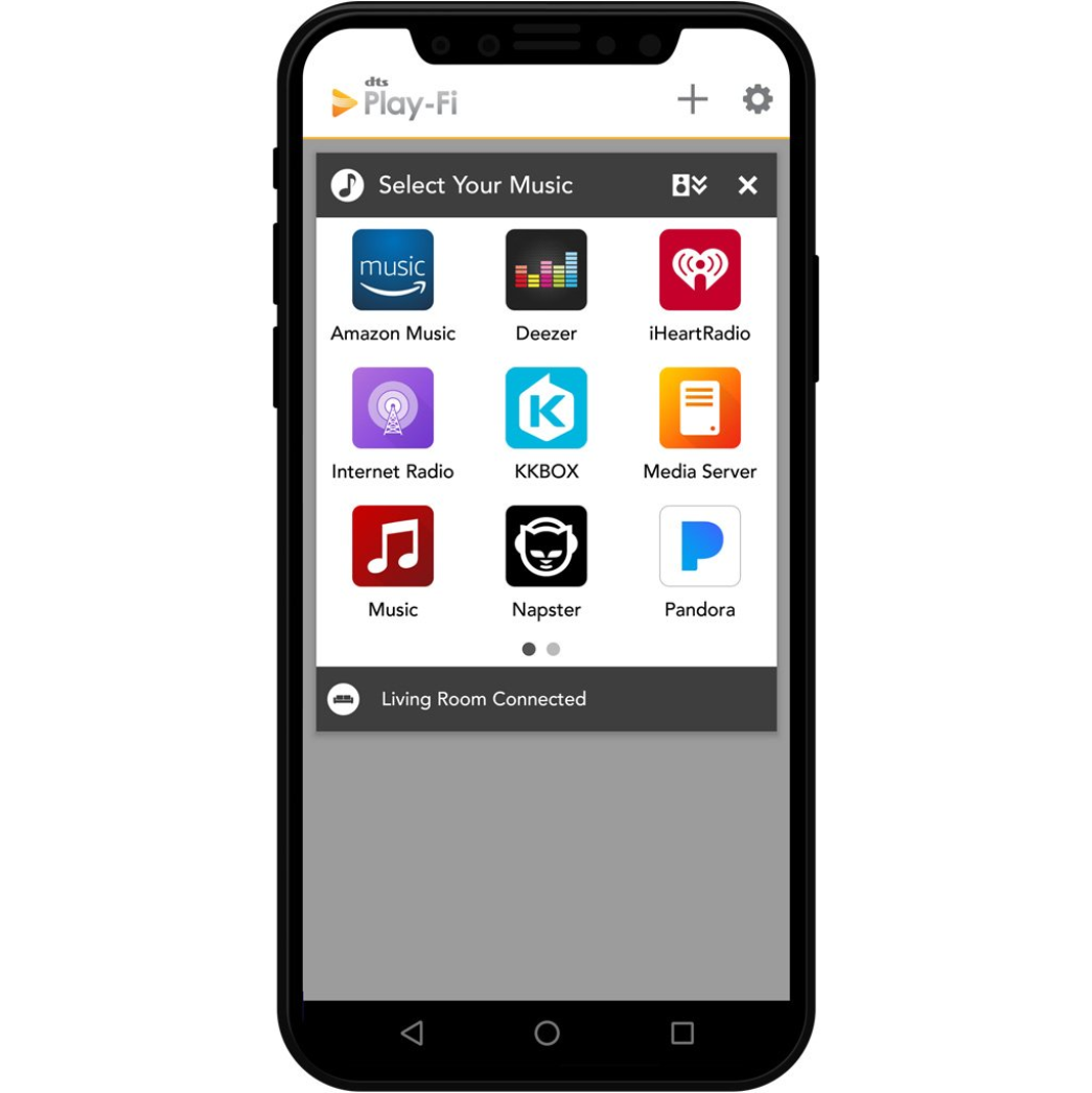 DTS Play-Fi app control lets you access music streaming services and audio content from any smartphone or tablet via WiFi and distribute it throughout your home.