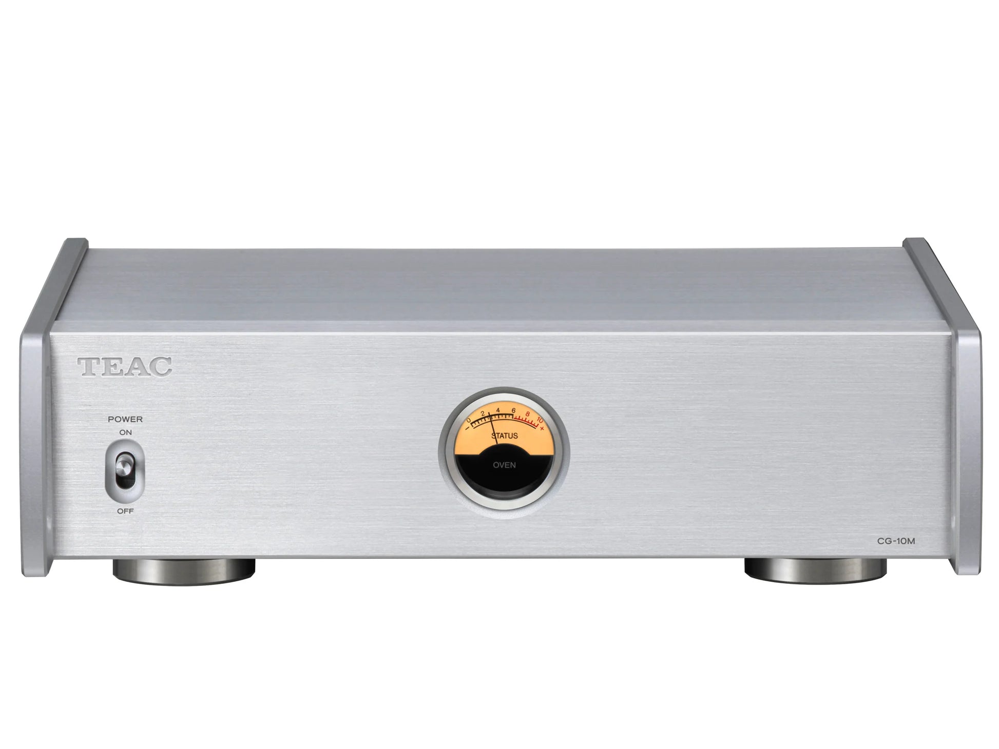 The Oven Status Analogue Gauge located in the middle of the unit, a TEAC trademark in recent years, shows the stability of the crystal oscillator when in use. As the temperature of the oven that contains the crystal oscillator reaches to the ideal temperature for accurate clock generation, power consumption of the oven decreases and the gauge points to zero, signaling to the user that the digital processing on the connected device is now controlled by an extremely accurate 10MHz clock signal.